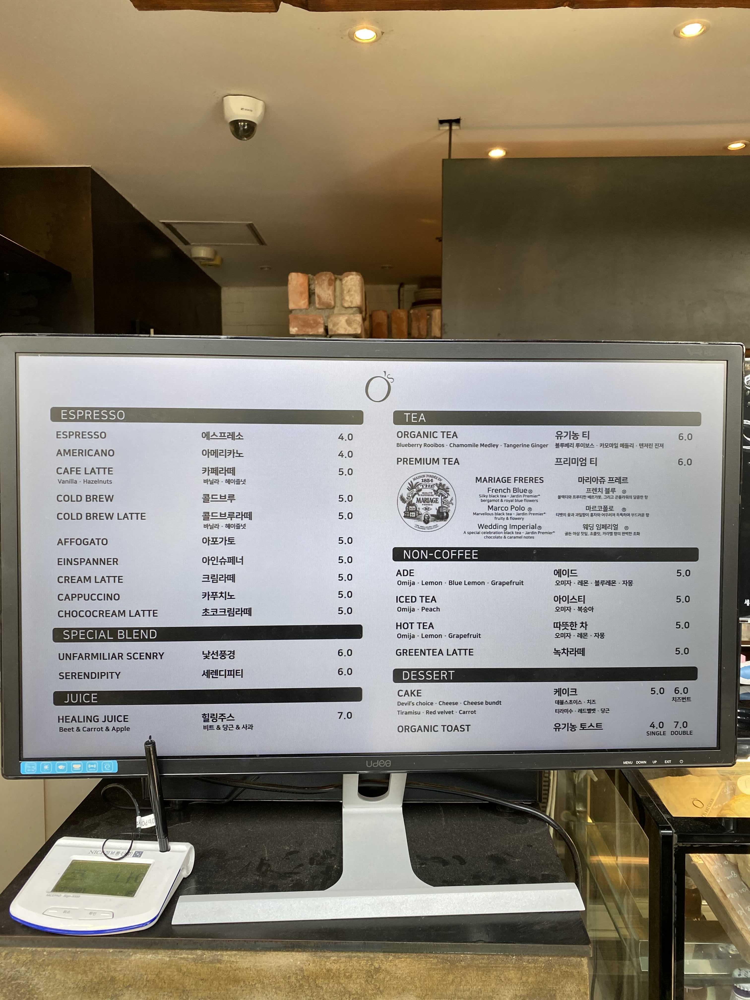 디저트와 음료 종류와 금액도 확인해주시구요 :)