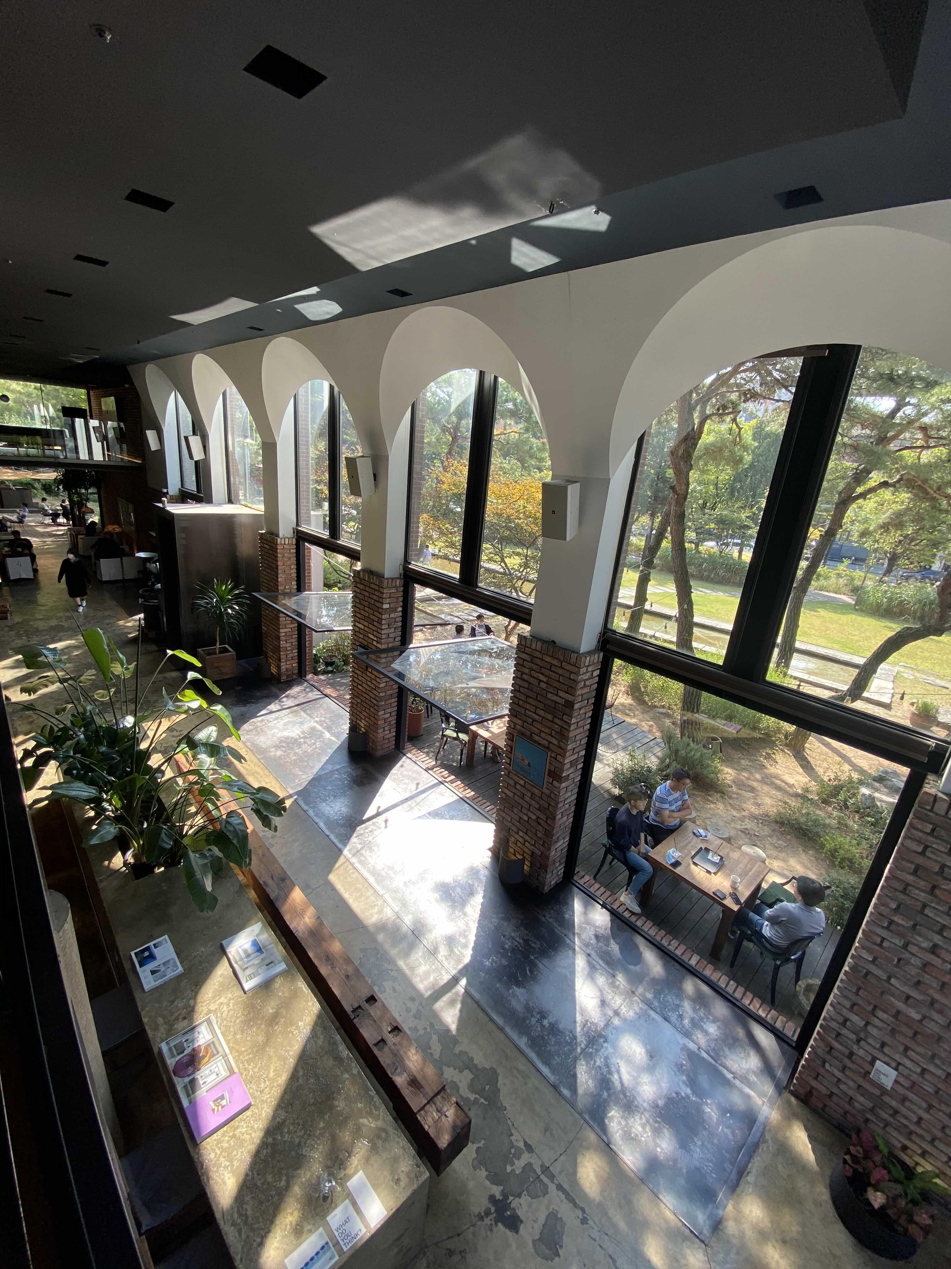 카페 중간에 크게 창이 뚫려있는데